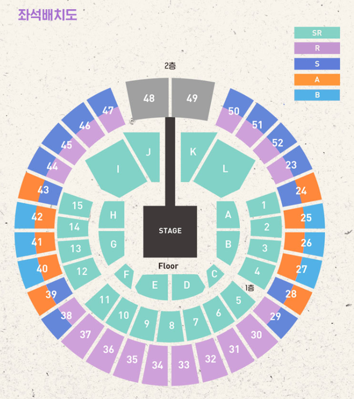 지역에 따라 SR석이 없는 콘서트 일정도 있습니다.