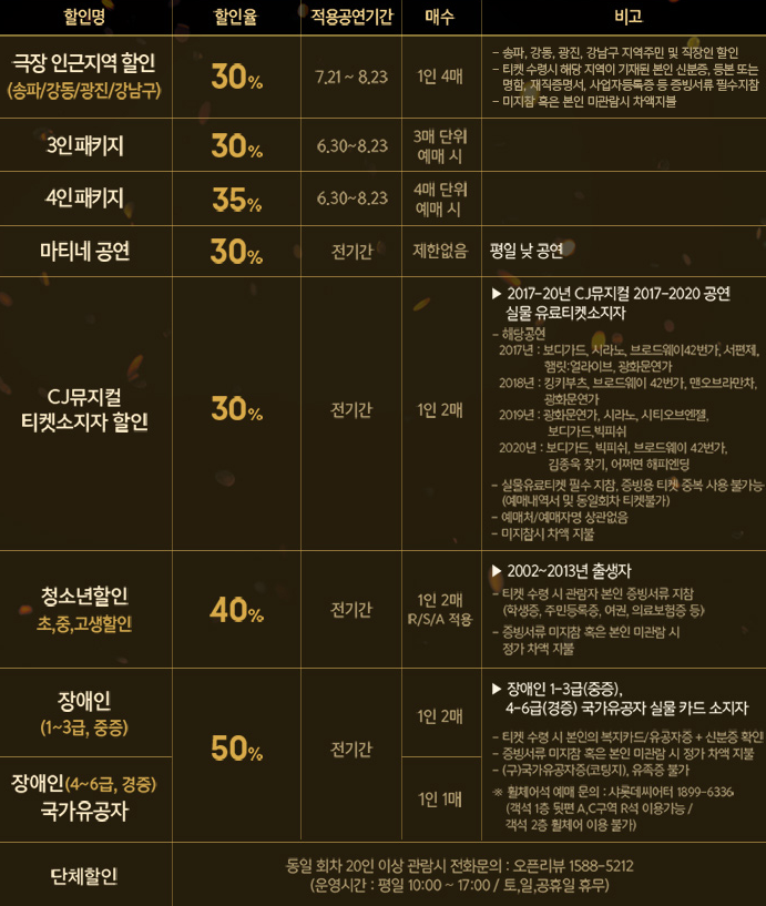CJ 뮤지컬 티켓 소지자 - 30% 할인