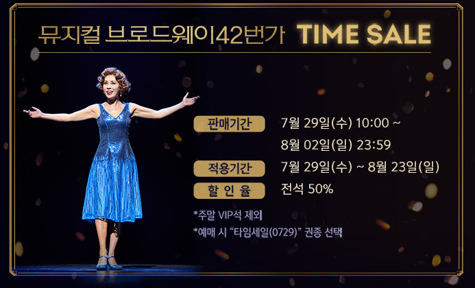 다만 주말 VIP석은 제외이니 참고해주세요. 다양한 할인을 통해 조금 더 부담 없는 가격으로 브로드웨이 42번가를 만나보실 수 있습니다.