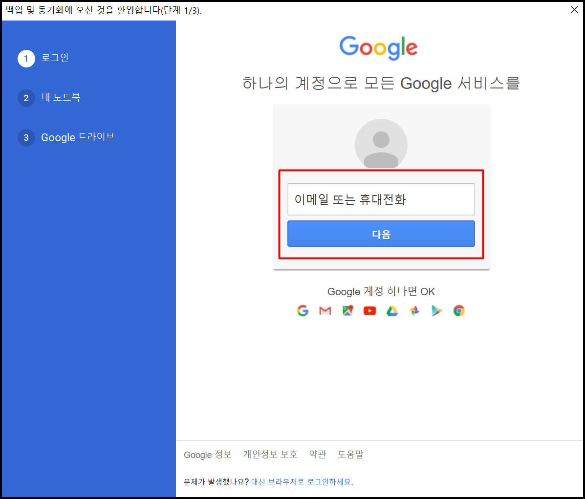Google 계정에 로그인하면 Google Drive 로그인이 됩니다.