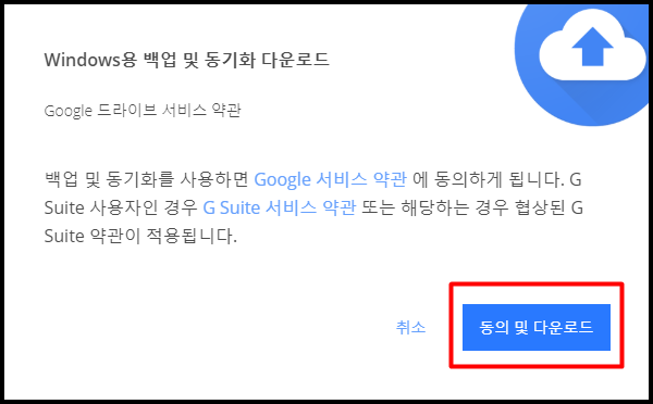 여기서 개인용 구글 드라이브 다운로드를 클릭합니다.