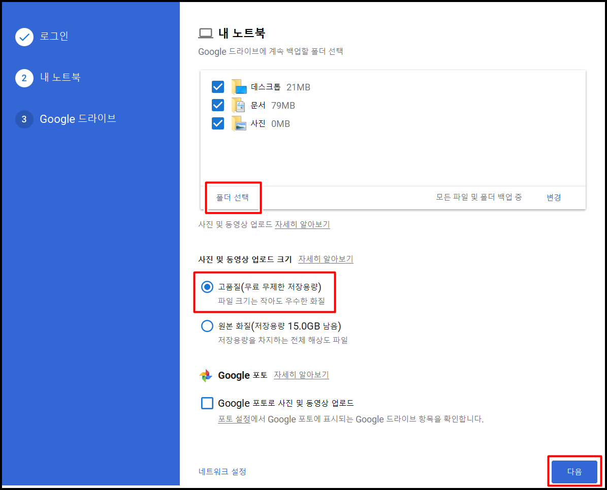이제 컴퓨터의 콘텐츠를 안전하게 구글 드라이브에 보관할 수 있습니다.